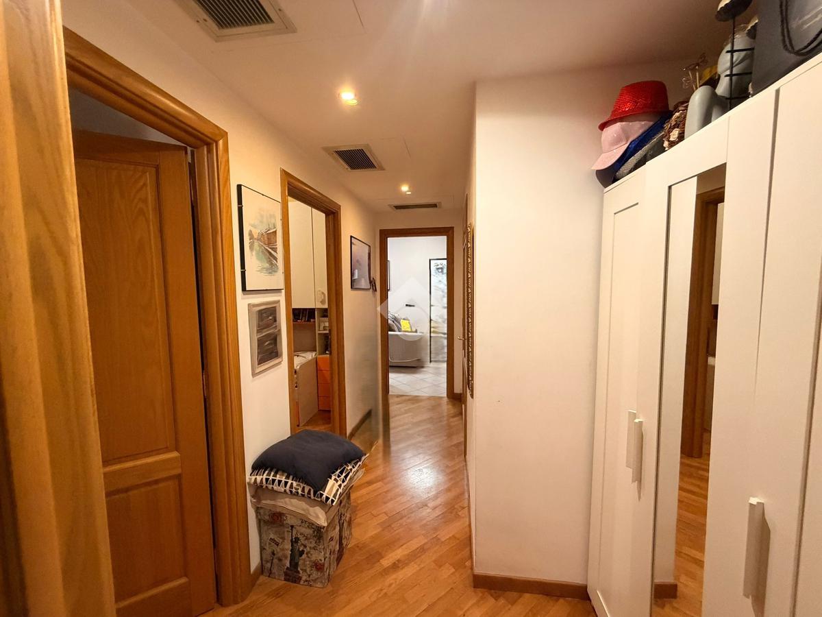 La cucina è a vista ed è arredata su misura con materiali moderni ed eleganti. Trattandosi di una recente costruzione, l'appartamento si presenta in perfetto stato, con ottime rifiniture, anche a livello impiantistico. I pavimenti in parquet aggiungono un tocco di classe all'ambiente, rendendolo ancora più accogliente. La disposizione interna è stata studiata con cura per garantire una perfetta organizzazione degli spazi e l'affaccio aperto e la sua esposizione garantiscono una splendida luce tutto il giorno.