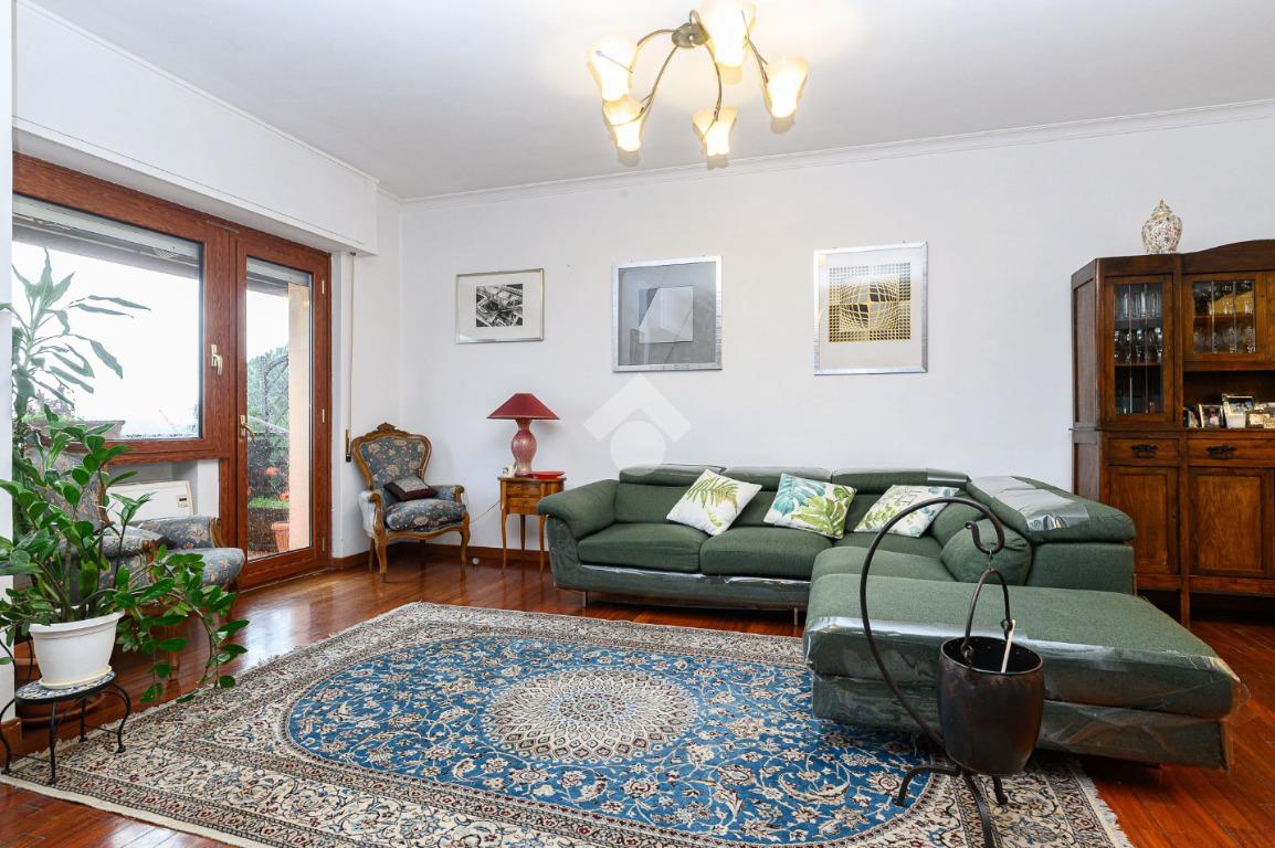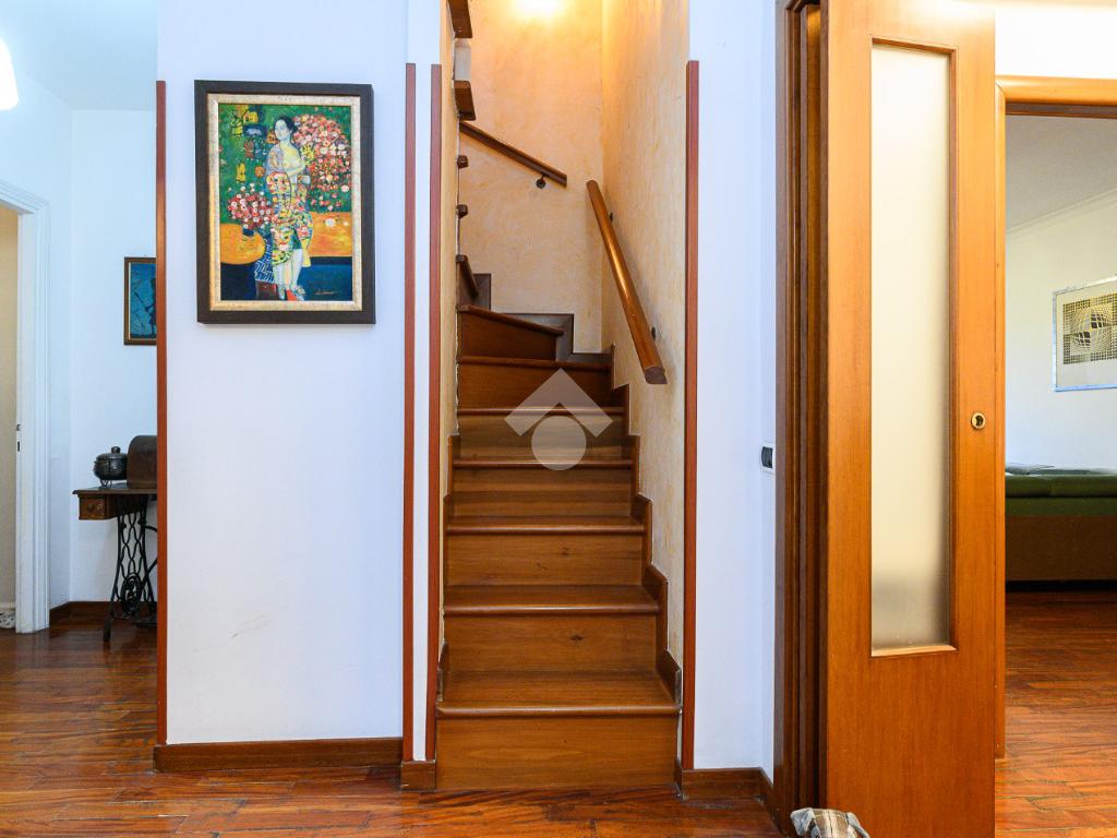 All'appartamento disposto su due livelli si accede attraverso un ampio e luminoso ingresso, che si collega all'elegante zona giorno composta da un salone doppio ben organizzato con zona conversazione e pranzo, illuminato da grandi finestre con uscita diretta sul terrazzo di 20mq vivibile in tutti mesi dell' anno.