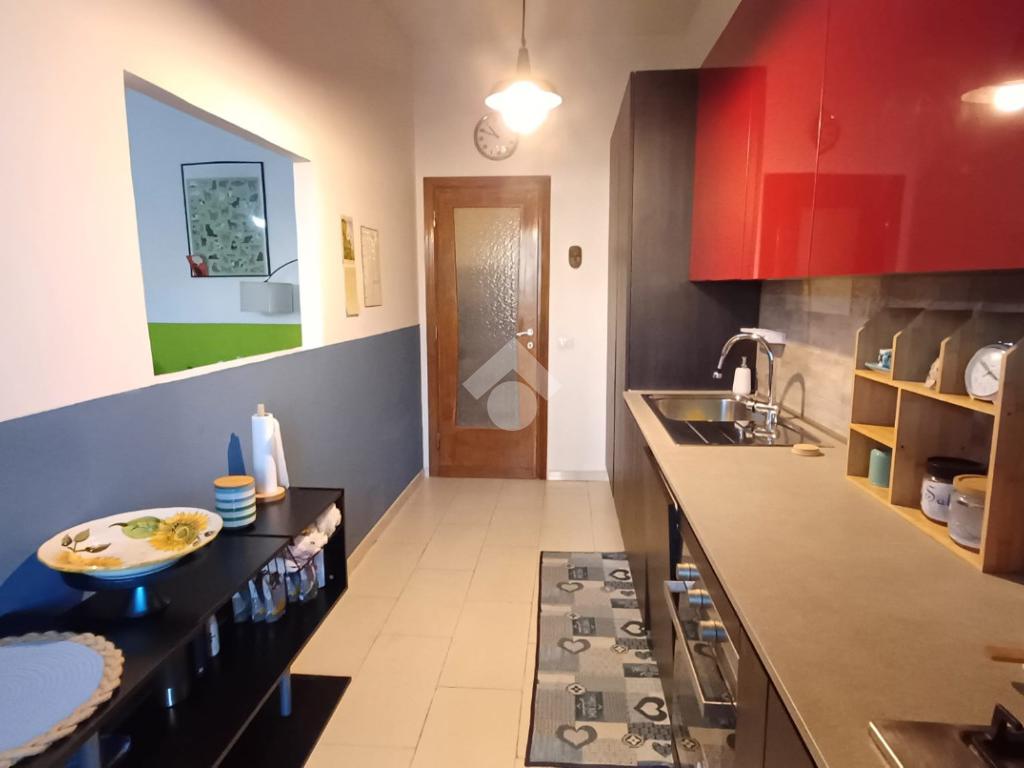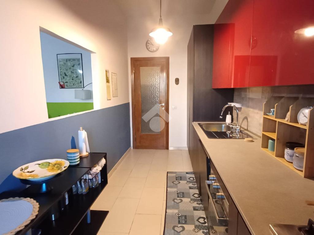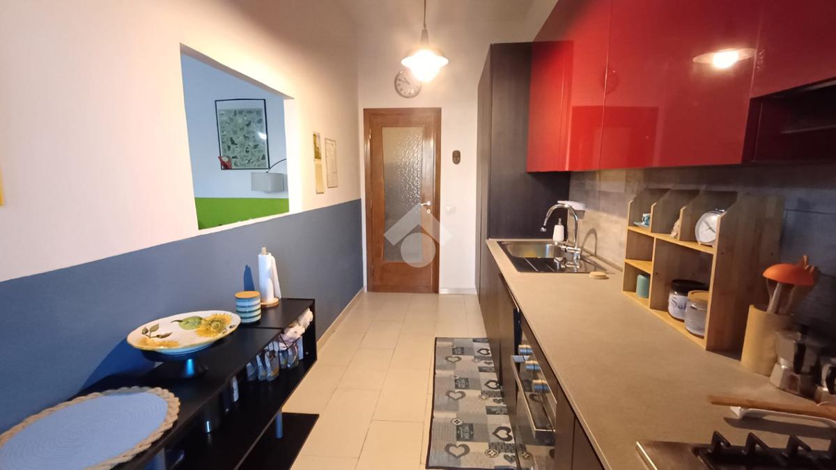 Internamente si compone di un ampio ingresso che consente l'accesso al soggiorno, un corridoio porta alla camera da letto, alla cucina abitabile e al bagno. La proprietà è impreziosita da pratico terrazzo a livello al quale si accede attraverso le porte finestre presenti negli ambienti.